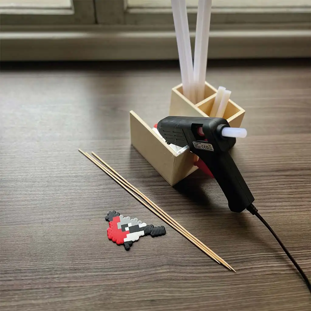 PlayBox: Pistol de lipit de dimensiuni mari, cu temperatură scăzută, cu 2 bare de lipici de 11mm.