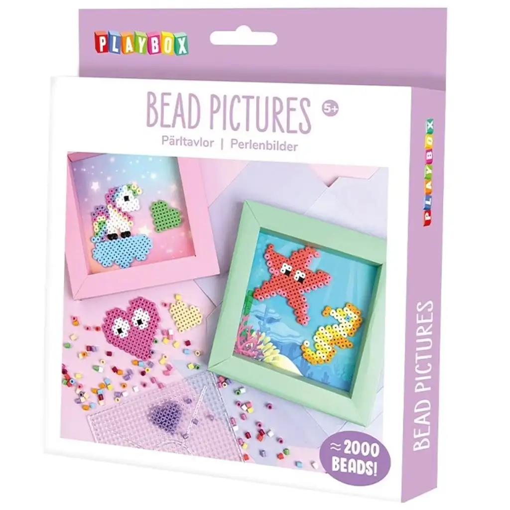 Creează opere de artă colorate, care pot fi încadrate, cu setul de realizat tablouri din mărgele PlayBox, care conține aproximativ 2000 de mărgele termoadezive! Acest pachet creativ este deosebit de ideal pentru copiii de peste 5 ani cărora le place să meșterească, să aranjeze forme și să experimenteze cu culorile. Cu ajutorul setului pot fi create modele vesele, prietenoase pentru copii – de exemplu inimioare, stele de mare, unicorni sau căluți de mare – care pot fi realizate ușor cu șabloanele incluse.