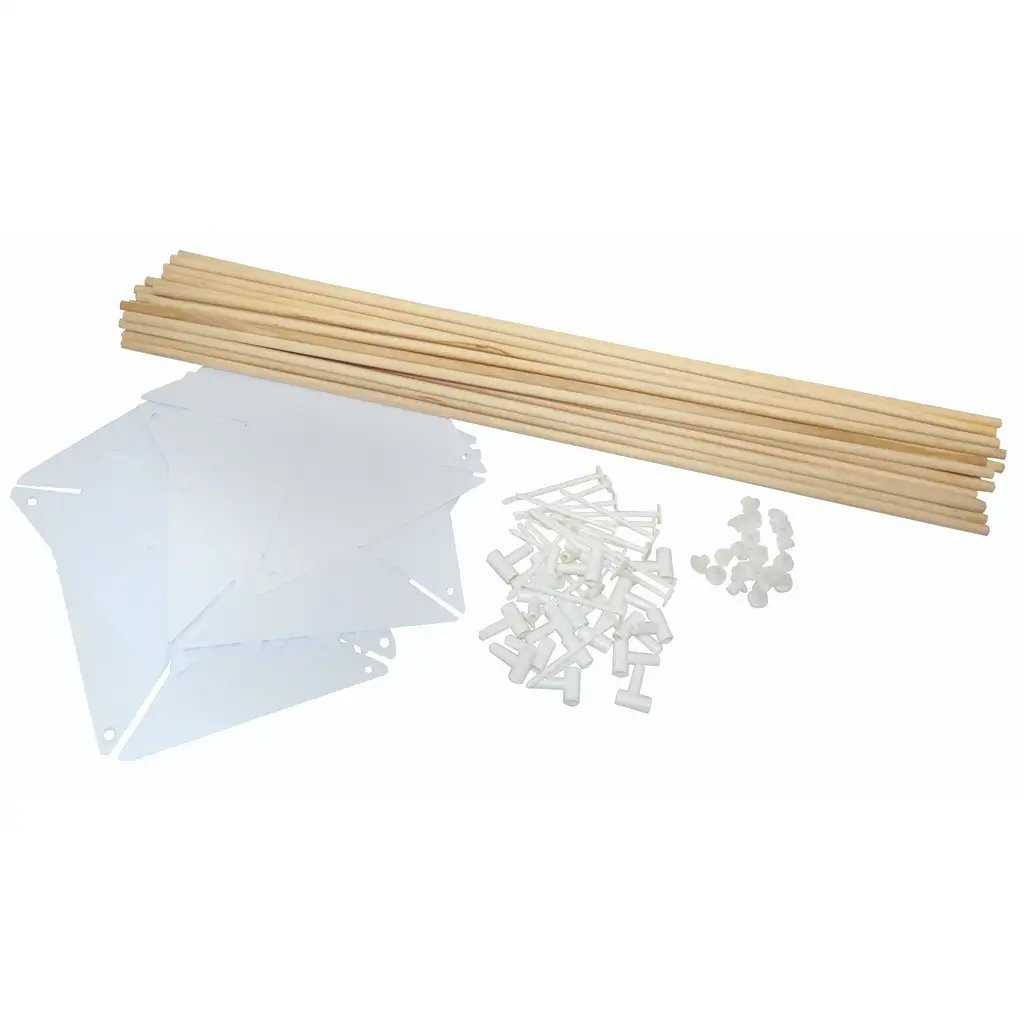 Acest set pentru fabricarea moriștilor de vânt include tot ce ai nevoie pentru a crea 20 de moriște de vânt. În set vei găsi un băț de lemn cu ajutorul căruia poți plasa ușor moriștele în grădină sau în alte locuri. De asemenea, setul include hârtiile și fixatorii din plastic care formează baza moriștelor de vânt.