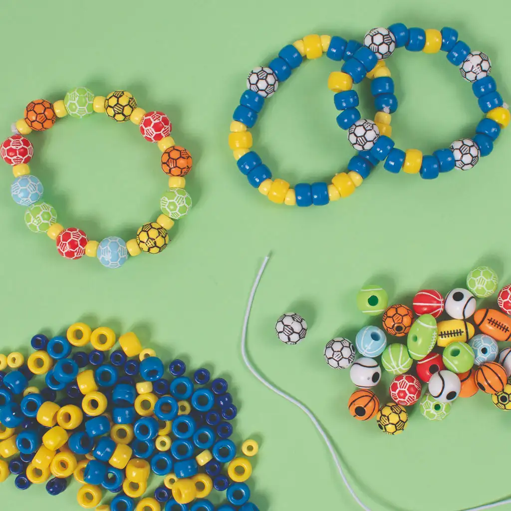 Setul conține aproximativ 300 de mărgele în formă de minge, care strălucesc în diverse culori, incluzând nuanțe de alb, galben, portocaliu, roșu, albastru și verde. Aceste culori îți permit să creezi bijuterii și decorațiuni unice și personalizate, care să scoată în evidență sporturile și echipele tale favorite.