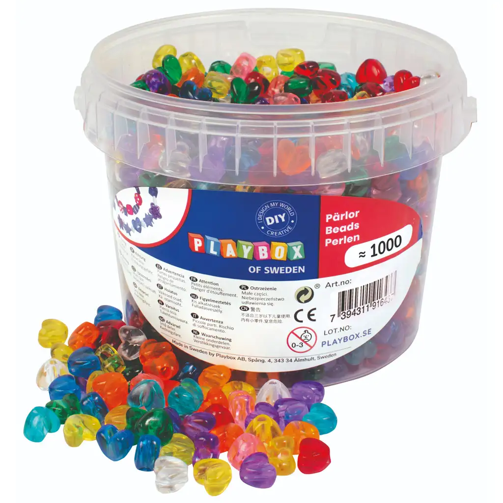 PlayBox: Set de mărgele colorate în formă de inimă, 1000 de bucăți