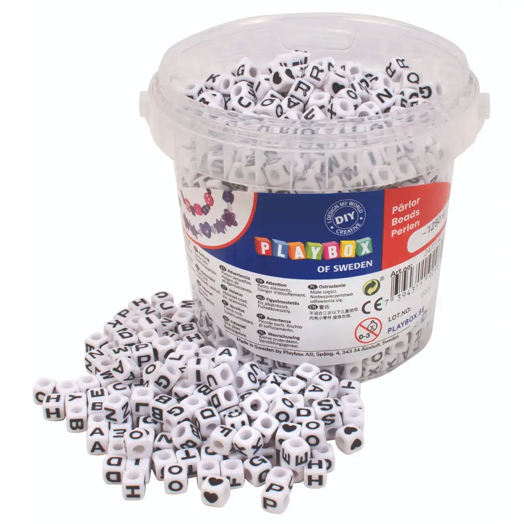 PlayBox: Set de mărgele cu litere în găleată, 1250 de bucăți