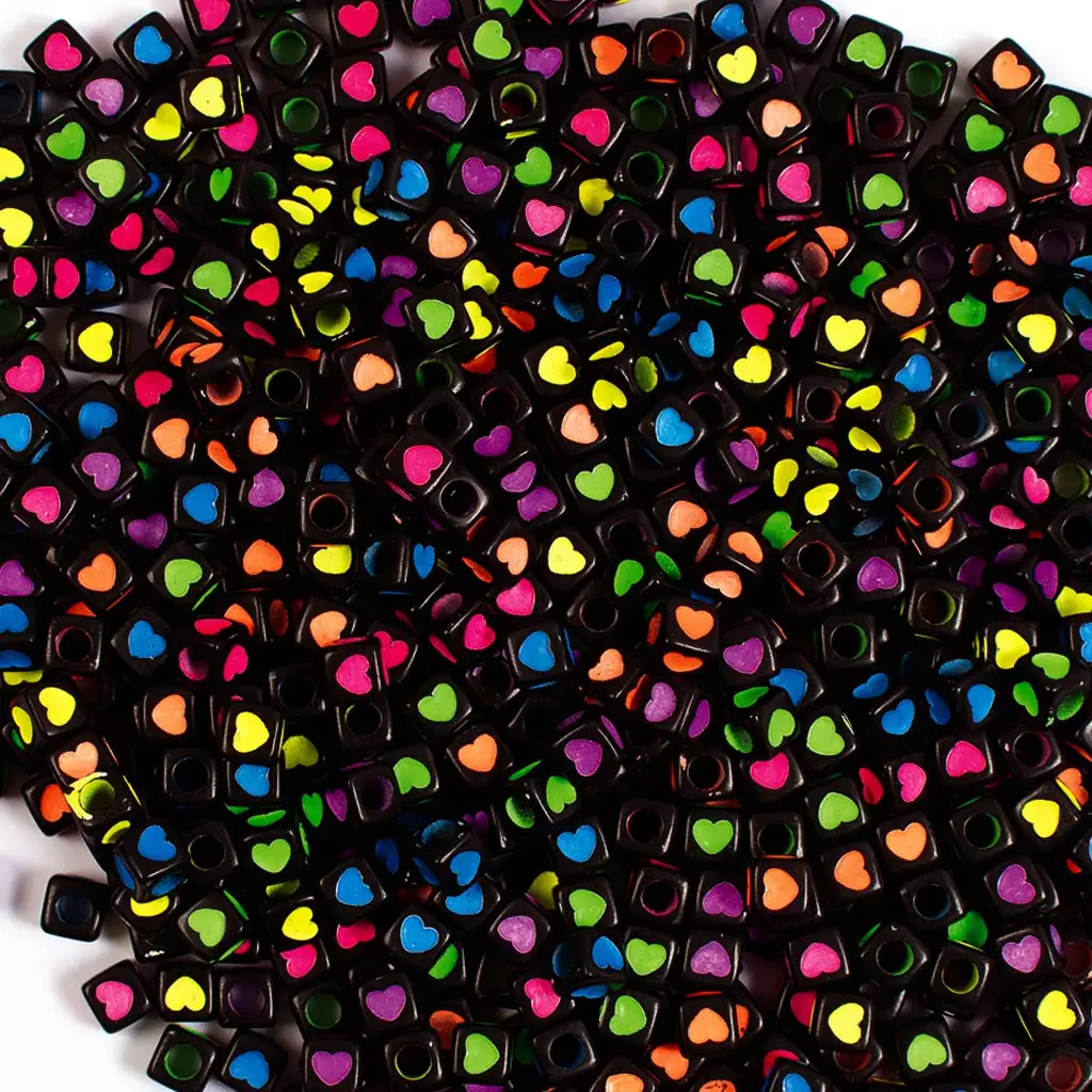 Acest set de mărgele negre din plastic, decorat cu modele în formă de inimioară, este o alegere excelentă pentru proiecte de artizanat, crearea de brățări și coliere. Inimioarele strălucesc în culori neon, astfel încât poți crea accesorii vesele și atrăgătoare.