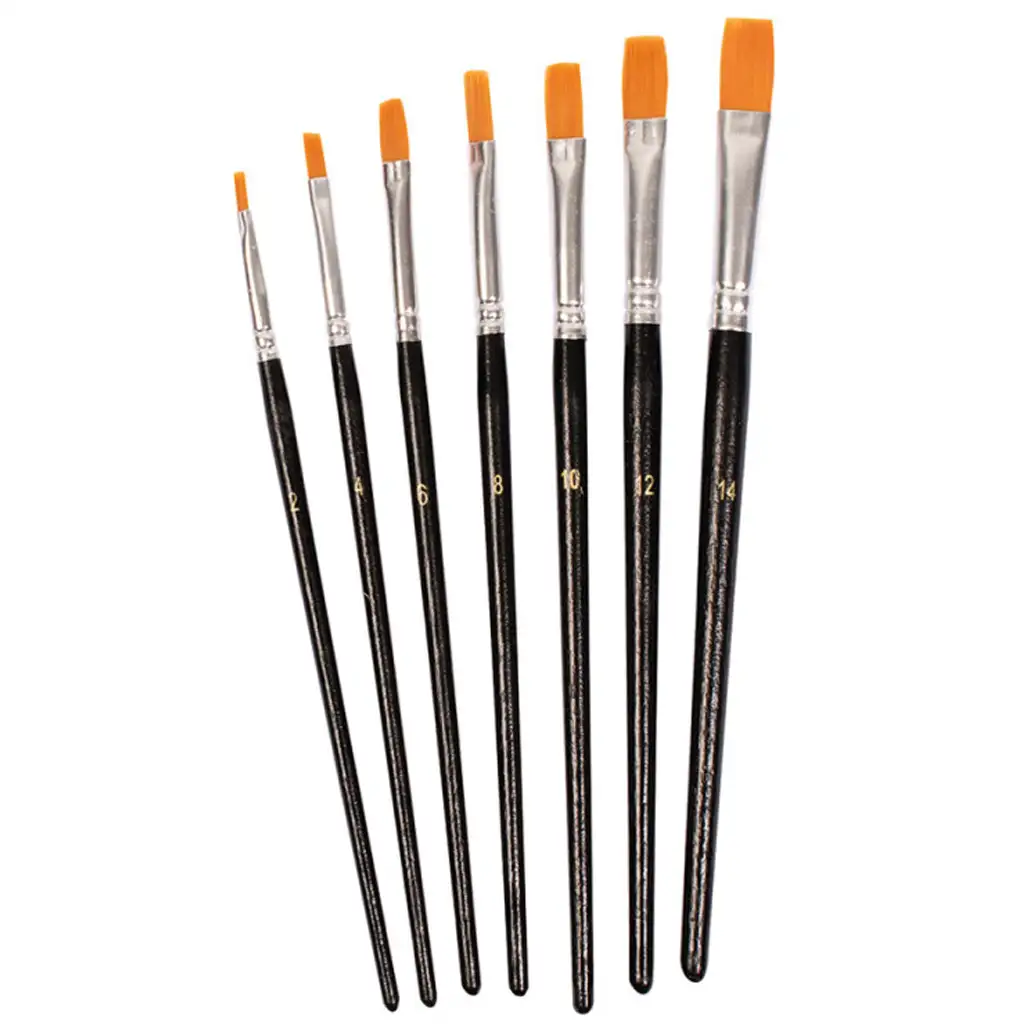 Setul de 7 pensule include pensule plate în diferite dimensiuni, pentru a crea linii și detalii de diferite grosimi. Pachetul include pensule în mărimile: 2, 4, 6, 8, 10 și 14. Aceste diferite dimensiuni permit adaptarea flexibilă la diversele nevoi și stiluri de pictură.