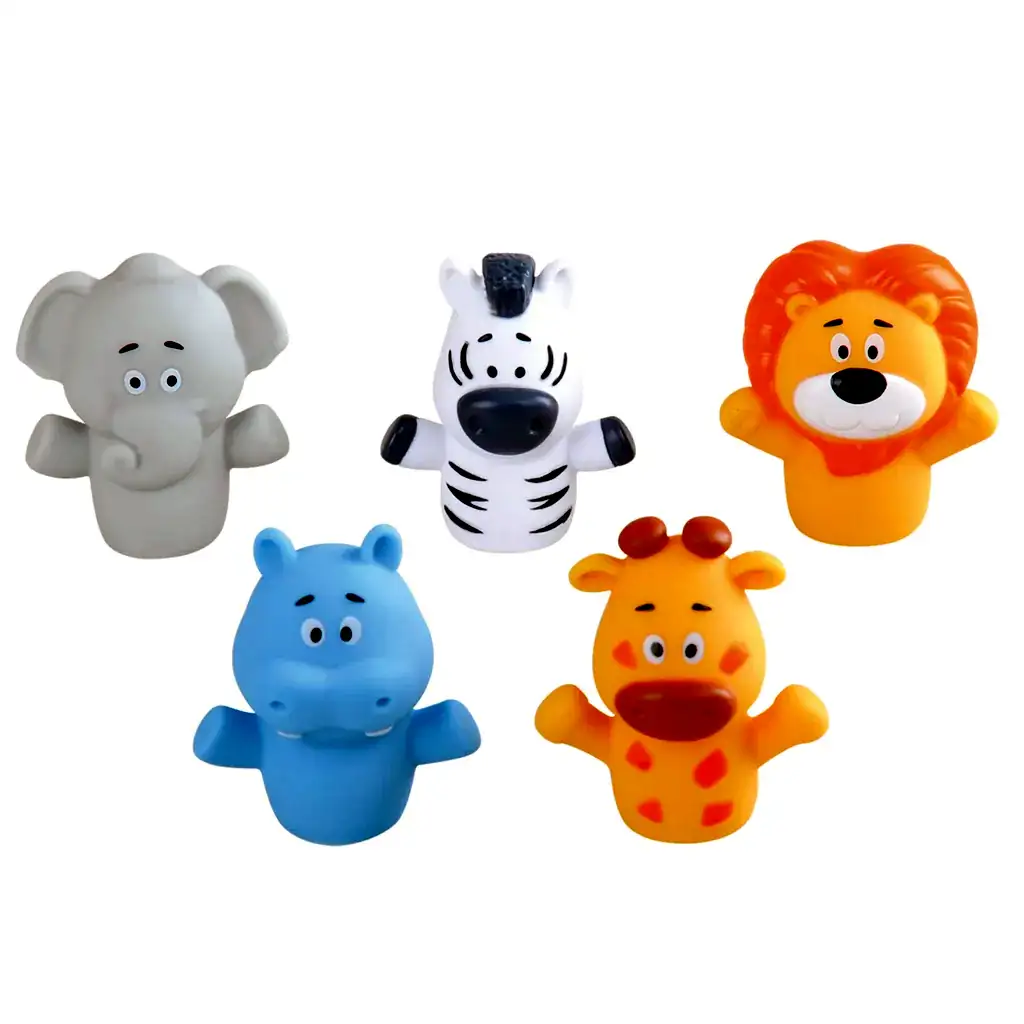 Set de marionete deget cu 5 animale din safari (elefant, leu, girafă, hipopotam, zebră)