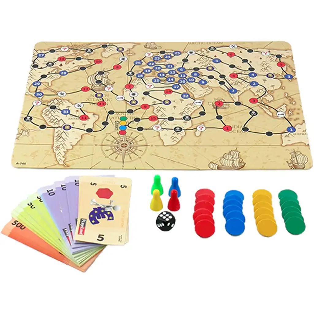 - Tabă de joc colorată, cu hartă mondială și accesorii