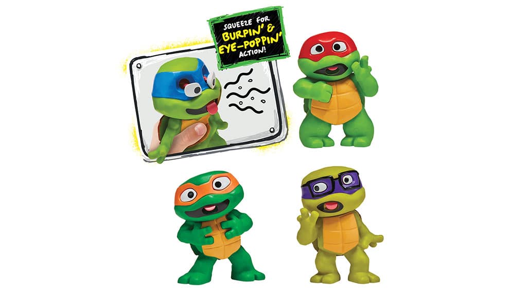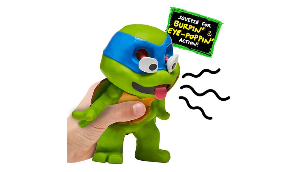 Cele mai noi figurine de colecție de la Playmates Toys schimbă acum puterea țestoaselor cu o putere de râgâit! Figurinele Tini Ninja Țestoase: Țestoasele Râgâitoare sunt realizate din plastic moale, cu ochi bulbucați și limbă care sare, amuzând copiii. Această echipă amuzantă și râgâitoare – Leonardo, Raphael, Donatello și Michelangelo – scoate sunete asemănătoare cu pârțurile atunci când copiii le strâng tare. Aceste figurine nu sunt doar distractive, ci oferă și o experiență de joacă creativă, permițând copiilor să se joace cu eroii lor preferați. Fiecare membru al colecției reprezintă un personaj unic și haios, astfel încât copiii pot descoperi cu bucurie sunetele și mișcările speciale pe care le pot face aceste figurine.