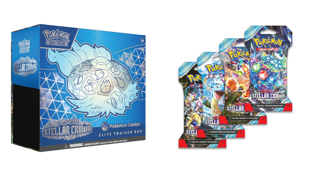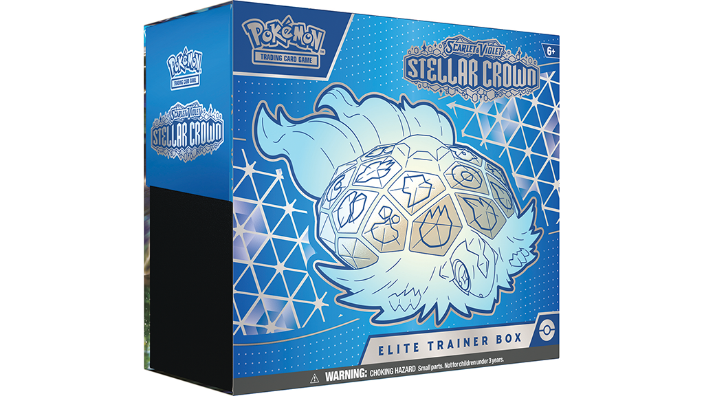 Conceput pentru copii de la vârsta de 6 ani, Pokémon TCG: Scarlet & Violet — Stellar Crown Elite Trainer Box este o extensie a jocului de cărți de colecție Pokémon. Extensia se concentrează pe fenomenul Terastal, pe care jucătorii l-au văzut pentru prima dată în jocurile video Pokémon Scarlet și Pokémon Violet. Noua extensie introduce Pokémonul ex Stellar Tera, precum și alți trei Pokémon pentru TCG: Archaludon, Hydrapple și Pokémonul Legendar Terapagos. Cutia conține nouă pachete booster Stellar Crown Elite, o carte promoțională cu folie artistică completă cu Noctowl, 65 de protecții pentru cărți cu Stellar Form Terapagos, 45 de cărți de Energie, șase zaruri pentru numărarea daunelor, un zar pentru aruncare utilizabil în competiții, două markere de stare, un ghid pentru extensie și un card de cod pentru Pokémon Trading Card Game Live.
