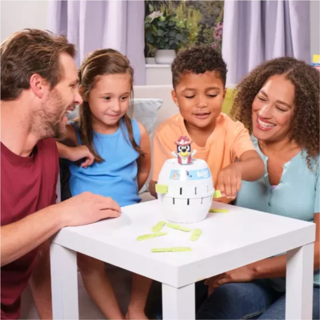 Jocul de societate Pop Up: Bluey este un joc de familie distractiv și palpitant, care aduce lumea veselă a cunoscutului desen animat Bluey copiilor și adulților. În timpul jocului, jucătorii introduc pe rând bețele în formă de crocodil în butoiul lui Bluey, în timp ce toți așteaptă cu nerăbdare când va sări Bluey afară. Momentul neașteptat este plin de râs și emoție, astfel încât fiecare rundă de joc oferă o experiență specială.