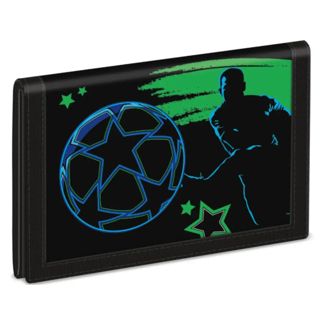 Portofelul Ars Una Champs este alegerea perfectă dacă cauți un accesoriu cool și practic pentru copilul tău pasionat de fotbal! Designul spectaculos, cu model fotbalistic, cu siguranță îi va plăcea, iar închiderea cu arici asigură o utilizare ușoară chiar și pentru mâinile mai mici. În interiorul portofelului, patru buzunare mai mici ajută la organizarea actelor și bancnotelor, are un compartiment special pentru abonament, iar pentru monede există un buzunar cu fermoar. Datorită dimensiunilor sale compacte, încape ușor într-un buzunar sau în ghiozdan.