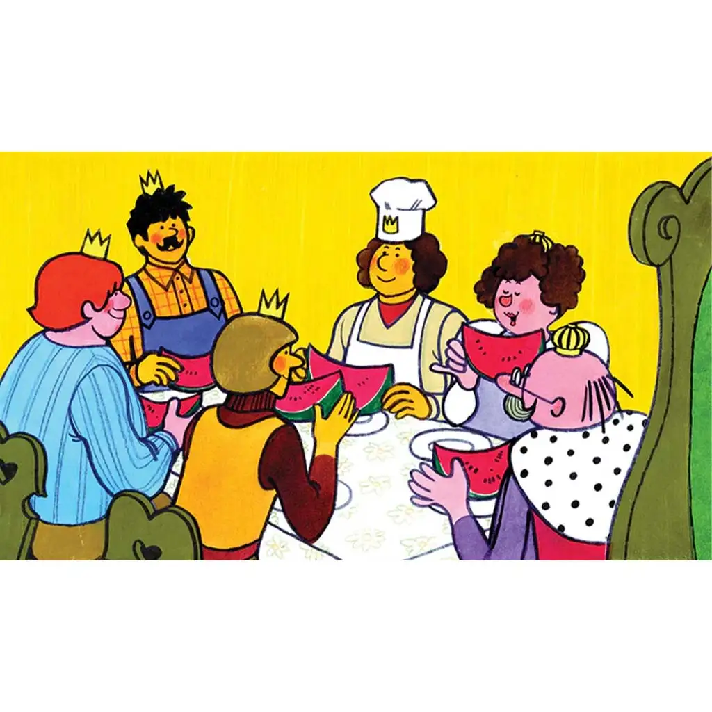 Diafilm-ul „Povestea celor șapte meserii” este o istorie plăcută, care invită la reflecție și inspiră, prezentându-le copiilor, într-un mod jucăuș, că fiecare are propria cale și propriul talent. Povestea se desfășoară într-un regat aparte, unde vine vremea ca prinții să se confrunte cu realitatea: viața de conducător, de una singură, nu asigură traiul, așa că toți cei șapte fii trebuie să învețe o meserie. Pot alege liber, astfel încât fiecare pornește pe drumul care îl atrage. Unul devine tâmplar, altul bucătar, fierar, grădinar sau pădurar, și cu muncă sârguincioasă își găsesc locul în lume. Totuși, unul dintre băieți ia o decizie greșită, devine contrabandist, iar deși nu ajunge departe, farmecul poveștii constă tocmai în faptul că părinții lui îl primesc înapoi cu dragoste, și așa. Fiul cel mai mic, însă, alege o meserie cu adevărat de basm: devine „mutător de munți”. La început, pare un drum ciudat, totuși se întoarce acasă fericit și cu succes, dovedind că imaginația, perseverența și autenticitatea sunt de valoare. Ilustrațiile cu aer clasic întăresc mesajul poveștii, iar formatul de diafilm oferă ocazia de a discuta împreună despre muncă, alegeri și acceptare.