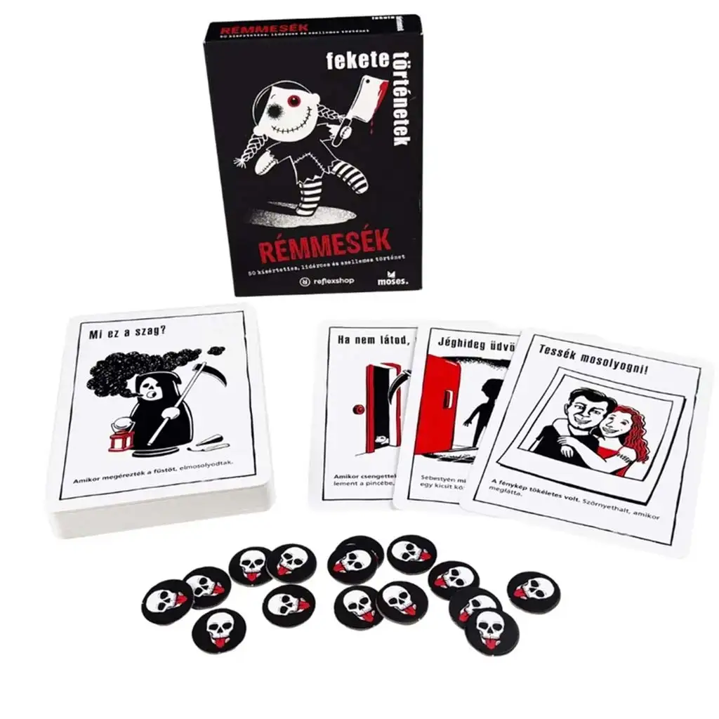 Pregătește-te pentru o experiență de joc care îți va da fiori pe șira spinării – dar în același timp vei rezolva cele mai întunecate mistere râzând! „Black Stories: Povești de Groază” este un joc de societate cu adevărat special, care include 50 de povești bizare, tulburătoare și totodată amuzante, inspirate din cazuri reale de decese și un amestec de umor morbid. Nu toate misterele se termină cu un final fericit... dar asta face jocul și mai captivant!