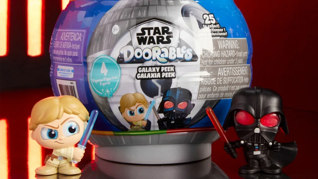 Obiectul de bază colectabil al seriei este capsulele Star Wars Doorables Galaxy Peek, fiecare având forma Stelei Morții și conținând patru dintre cele 25 de figurine colectabile ale seriei. Copiii pot colecta personaje rare și ultra-rare, cum ar fi Darth Vader, Luke Skywalker, Prințesa Leia, Han Solo, C-3PO, Jabba the Hutt, Grogu și Mandalorianul (Din Djarin).