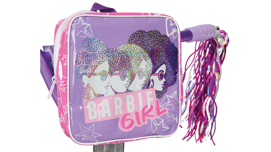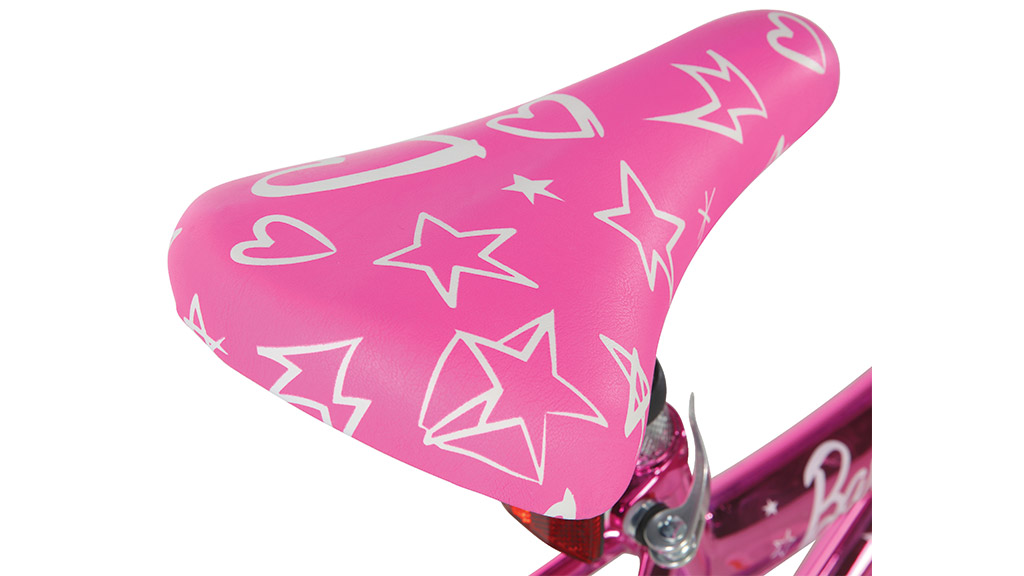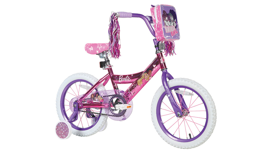 Bicicleta pentru copii Barbie de 16 inci este un vehicul colorat, proiectat pentru a fi prima bicicletă a copiilor. Strălucește în nuanțe vii de roz și mov Barbie și este decorată cu grafice care o înfățișează pe Barbie și prietenii ei. În plus, vine cu un rucsac detașabil.