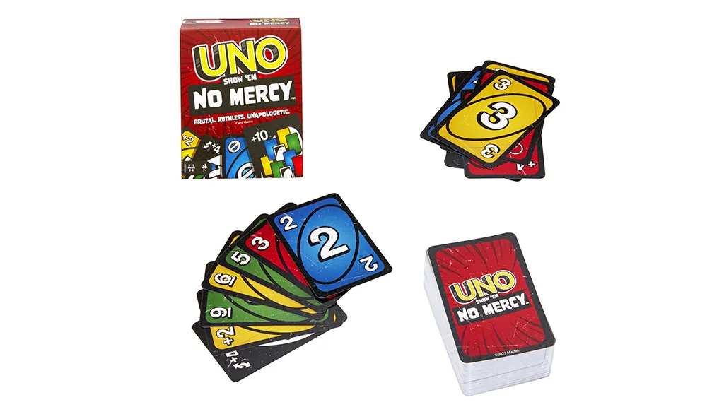 UNO - Fără milă! Un răsucire nemiloasă pe jocul favorit al lumii, UNO. Această versiune adaugă 56 de cărți noi și reguli speciale la gameplay. Jucătorii vor găsi cărți de acțiune mai dure, cum ar fi Săritul tuturor și Tragerea a 10 cărți.