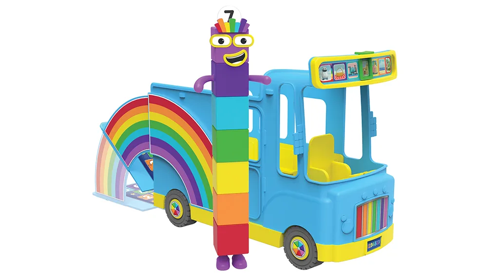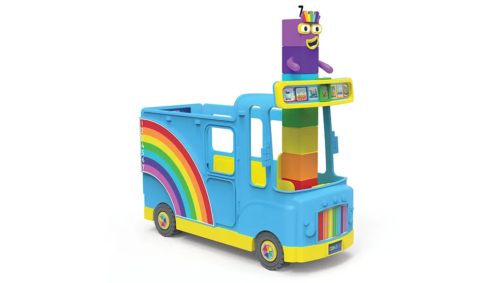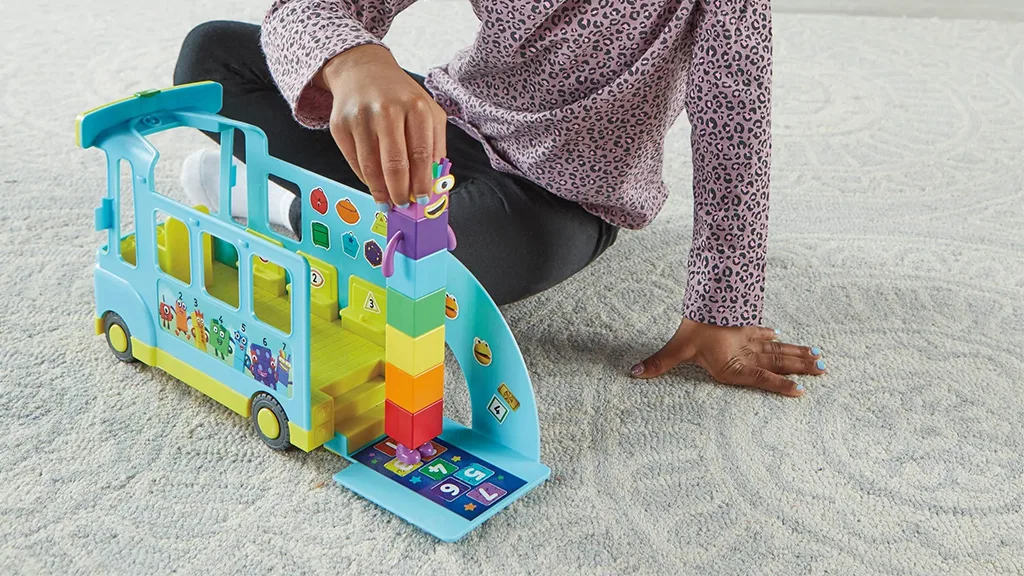 Autobuzul este plin de funcții interactive de joc: Pe roțile sale rulante, partea din spate se deschide pentru a crea un curcubeu și pentru a dezvălui un panou pentru școala de sărituri pentru copii pentru a învăța să numere. Există suficient spațiu pentru ca copiii să-și poată lua orice altă figurină Numberblocks pe care o au, precum și orice figurină de acțiune pe care doresc să o aducă pentru a se alătura distracției.