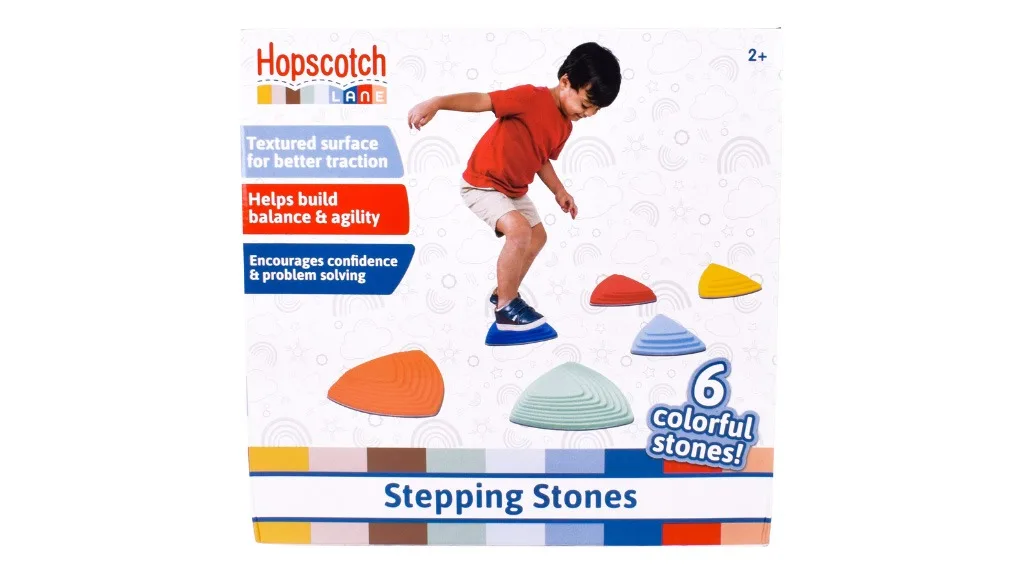Cu pași mici spre mari aventuri pe Aleea Piatrelor de la Hopscotch! Ajută copiii să-și dezvolte simțul echilibrului și abilitățile cu șase piatre luminoase, în culori și dimensiuni moderne diferite - galben, roșu, albastru deschis, verde, portocaliu și albastru închis. Piatrele versatile sunt realizate în diferite dimensiuni, fiecare latură având o înclinație și dificultate diferită.