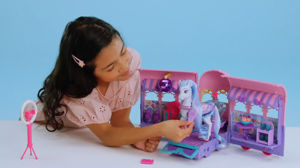 Perla și, ami a legfontosabb, a haja egyszerűen gyönyörű. A gyerekek imádni fogják, hogy ez a házigazda ló mennyi kreatív játék lehetőséget rejt magában, gyönyörű környezetében, amelyben retro elemek (mint például egy zenegép a karaoke állomáshoz) és modern berendezések, mint egy szelfi állomás is megtalálhatók. A gyerekek a mellékelt matricákkal testre szabhatják a készletet is. Könnyen összecsomagolható, és tökéletes központi eleme lehet egy Wild Manes (vagy általában egy ló témájú) gyűjteménynek.
