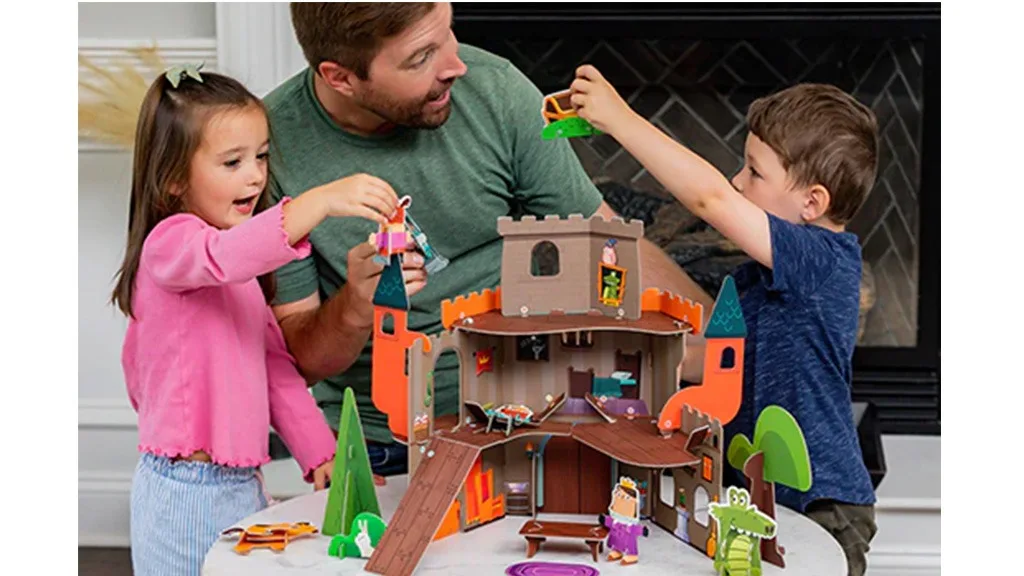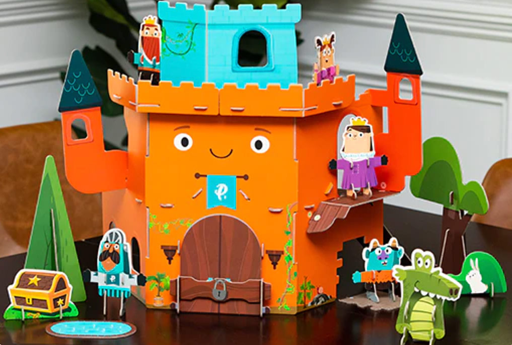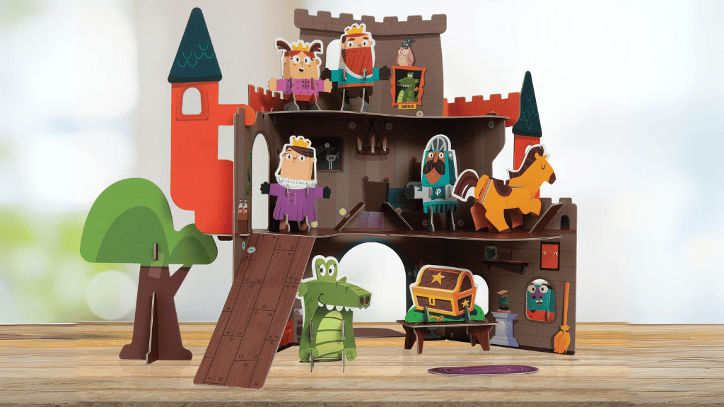 Adorăm că acest set de joc combină sustenabilitatea cu distracția! Construcția durabilă și ecologică din hârtie înseamnă că întregul set de joc este reciclabil. Copiii vor adora să asambleze setul ca pe un puzzle, ceea ce le dezvoltă abilitățile motorii fine și rezolvarea problemelor. Diferitele personaje și scene, de la cavaleri curajoși la dragoni mistici, oferă posibilități infinite pentru povestiri creative. În plus, este ușor de împachetat și transportat, fiind perfect pentru după-amiezi de joacă sau vizite la bunici.