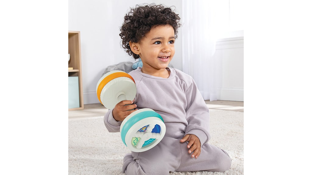 Familia de produse Bebé Fuerte încurajează mișcarea, atingerea timpurie a reperelor și învățarea a două limbi. Prin rotirea greutății în cealaltă direcție, limba poate fi schimbată rapid de la engleză la spaniolă. Pe greutate se găsesc trei comutatoare simple: pornit și oprit, trei moduri și un volum mai mic.
