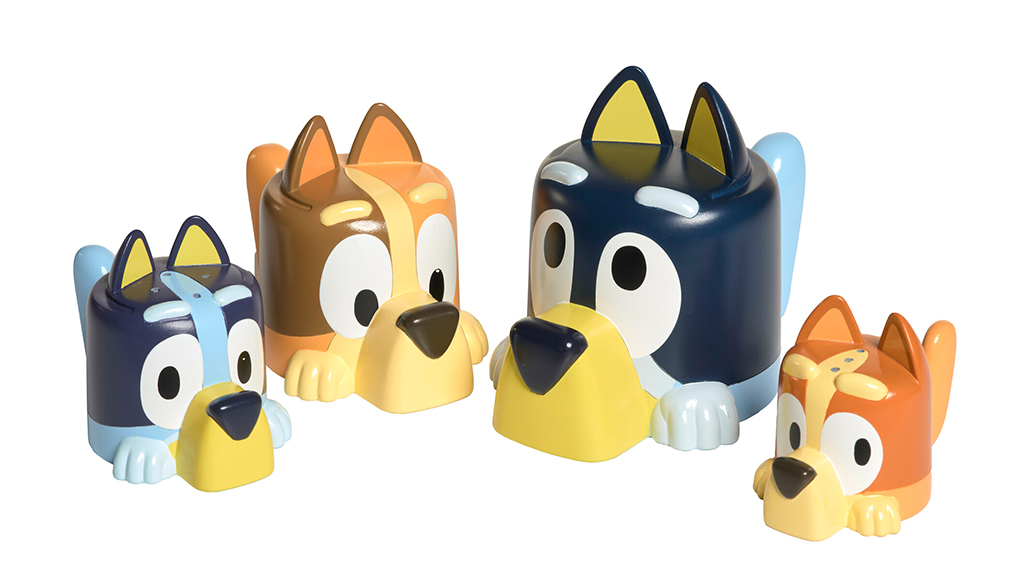 Copiii pot aștepta cu nerăbdare timpul de baie cu paharele inspirate de Bluey, pe care le pot stivui, le pot pune unul în altul și le pot turna. Paharele de turnare ușor de prins au și o funcție suplimentară de stropire.