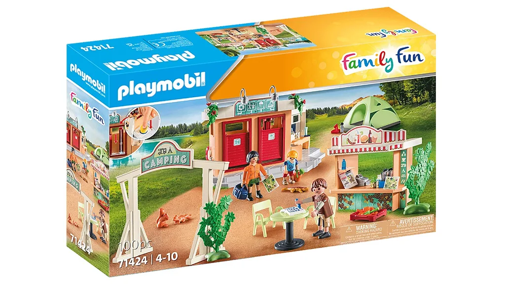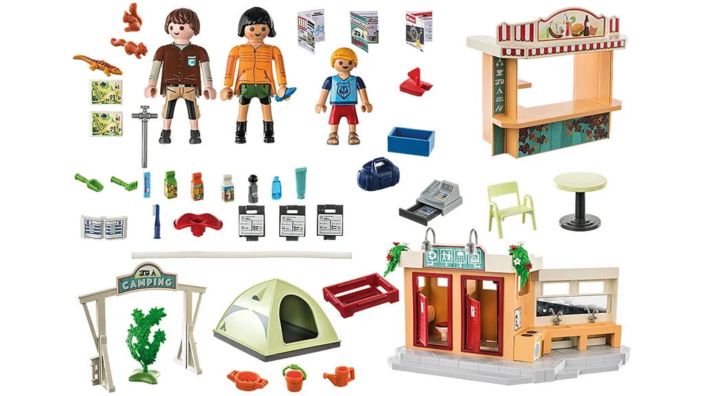 Acest set conține tot ce au nevoie copiii pentru o vacanță distractivă sub cerul liber. Locul de campare permite bucuriile campării fără a părăsi casa. Copiii pot crea campingul visurilor lor cu setul de 100 de piese care include trei figurine Playmobil, un chioșc, o masă, scaune și alte accesorii legate de camping.