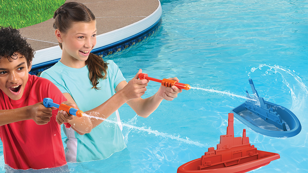Este necesar doar un montaj minim, dar nu sunt necesare "unelte".Așa cum toată lumea iubește jocul Torpedo, jucătorii jocului Battleship Splash încearcă să scufunde navele adversarului. Dar acum poți folosi pistoale cu apă! Umple cu apă pistolul cu apă inclus și trage în nava adversarului, încercând să o scufunzi înainte ca ei să o scufunde pe a ta!