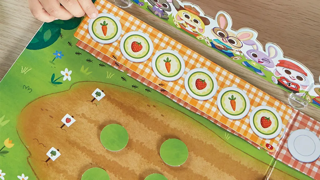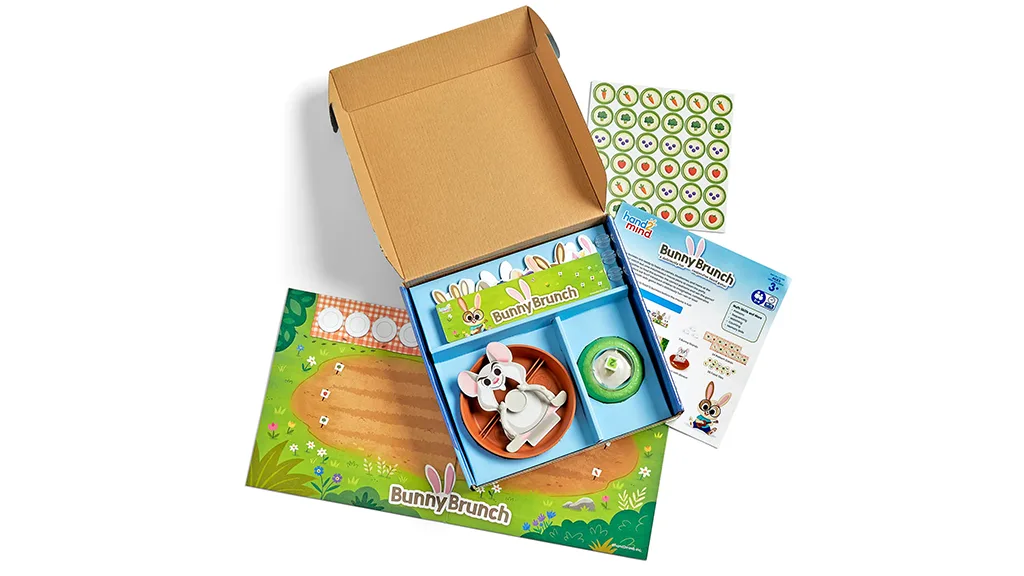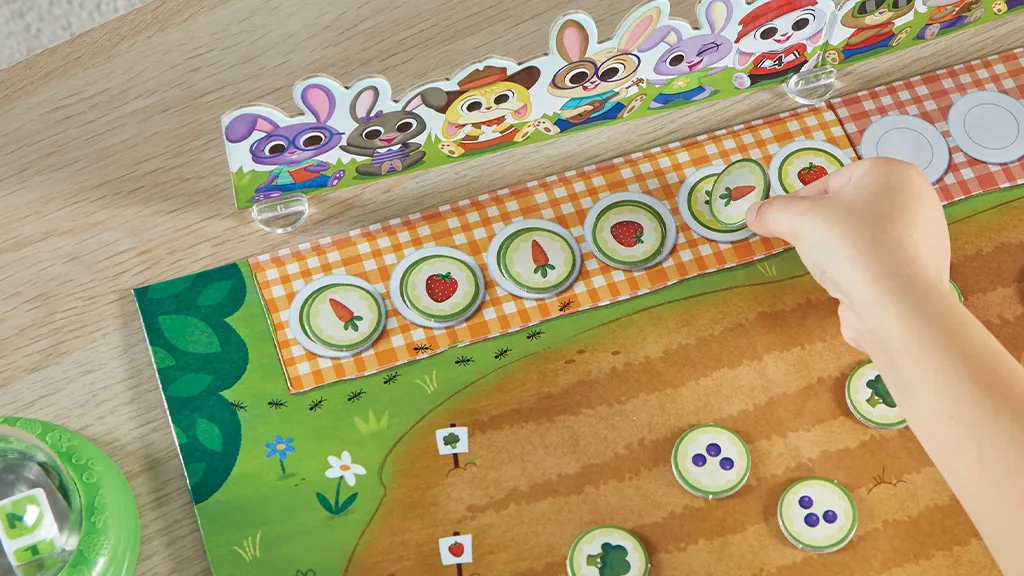În acest joc creat de hand2mind, jucătorii lucrează împreună pentru a asigura că cei 12 iepurași drăguți primesc comanda corectă de brunch. În primul rând, copiii aleg o carte model și o plasează în fața iepurașilor. Apoi, aruncă cu zarul pentru a vedea ce legume pot alege din grădină pentru a servi iepurașilor. Dar trebuie să fie atenți și la șoarecele flămând care încearcă să-i oprească pe parcurs - trebuie să completeze modelul înainte ca acesta să mănânce toată mâncarea. Dacă reușesc, jucătorii câștigă jocul împreună!