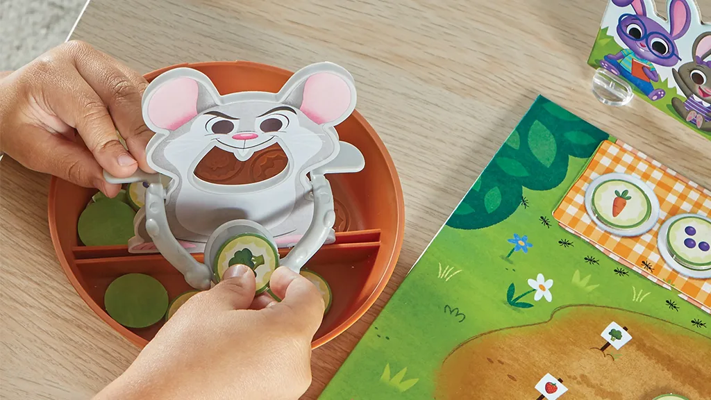 În acest joc, copiii concurează pentru a completa modele pe farfurii pentru a hrăni iepurașii înainte ca șoarecele să mănânce mâncarea pentru iepuri.