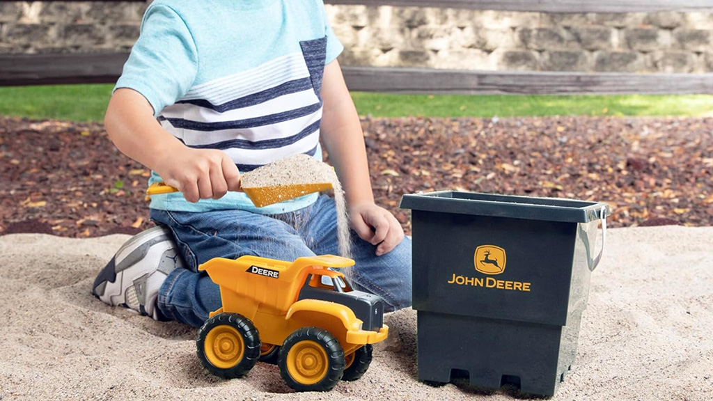 Acest set de joacă în trei părți conține o lopată, o găleată și un vehicul tematic John Deere. Setul este disponibil în două stiluri: Fermă, care are o combinație clasică de culori verde și galben și un tractor, sau Construcție, care are o combinație de culori galben și gri și un basculant. Cele două accesorii, lopata și vehiculul, sunt suficient de mici pentru a încăpea în găleată.