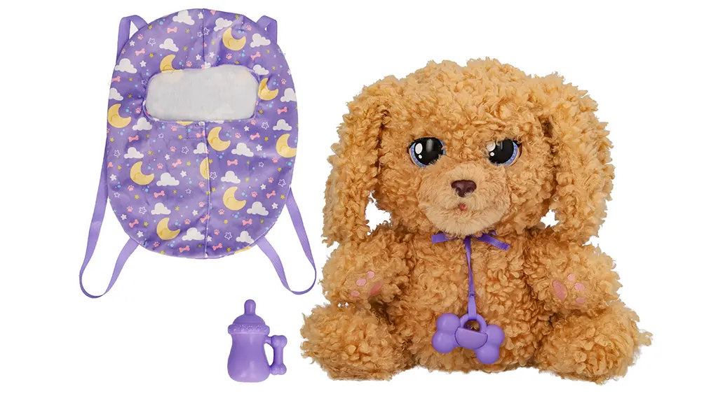 Copiii pot interacționa cu acest cățeluș care are blană moale și creț. Produce peste 15 sunete și reacții și include trei accesorii: o suzetă, o sticlă de hrănire și un sac de dormit. Acest joc nu este doar distractiv, ci dezvoltă și imaginația și abilitățile sociale ale copiilor în timp ce au grijă de cățeluș. Diferitele sunete și reacții îi ajută pe copii să înțeleagă relațiile de cauzalitate și îi încurajează să se joace creativ. Accesoriile oferă oportunități pentru jocul de rol, îmbogățind și mai mult experiența de joc.