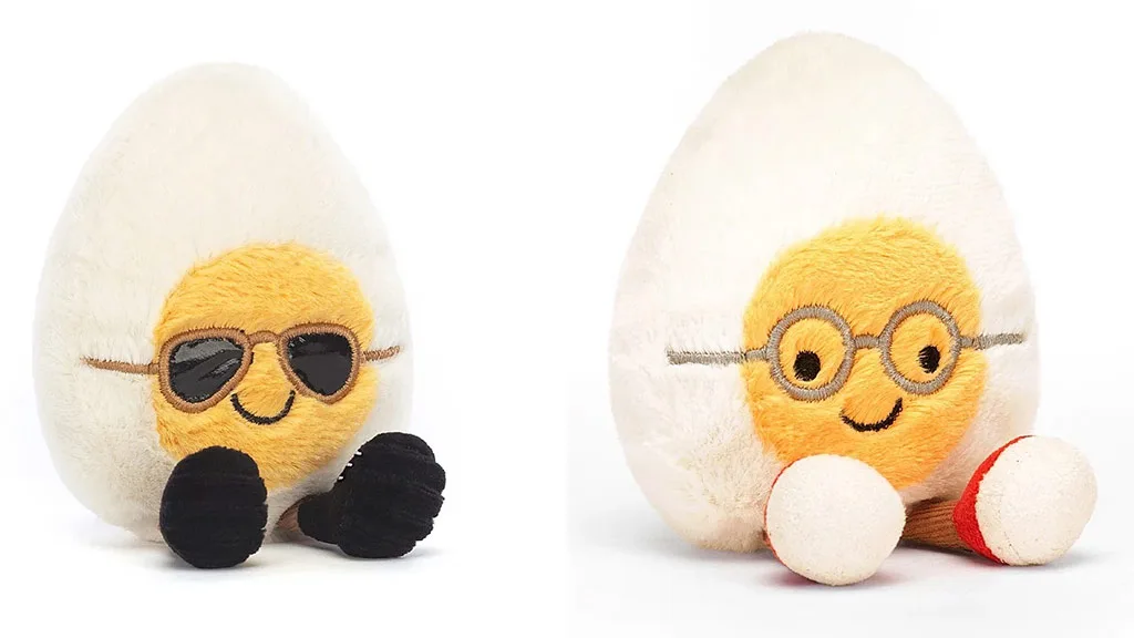 Nu-ți face griji, copiii nu vor fi capabili să strice aceste plușuri. Acest set de plușuri pe temă de ouă, format din patru piese, conține un ou zâmbitor, un ou cu ochelari de tip "geek", un ou cu ochelari de soare și un ou "diabolic" completat cu coarne roșii de diavol.