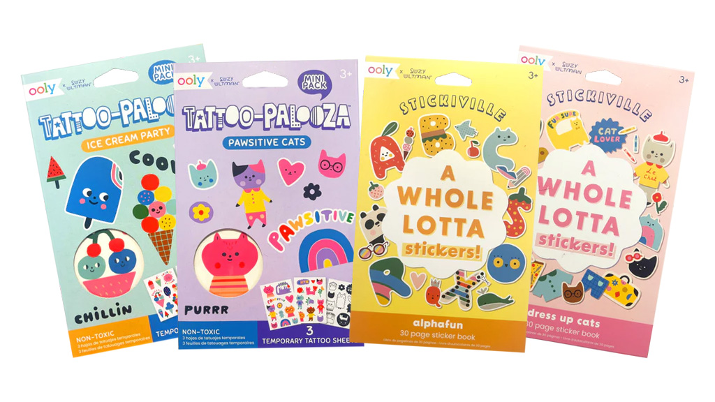 Artistul și ilustratorul Suzy Ultman a proiectat aceste autocolante și tatuaje temporare. Fie că un copil dorește să creeze cu pisici, fie că vrea un tatuaj cu înghețată, această colecție conține cartea de autocolante sau pachetul de tatuaje temporare potrivit pentru ei! Culorile vii și modelele detaliate ale autocolantelor și tatuajelor vor capta cu siguranță atenția și creativitatea copiilor. O alegere perfectă pentru un cadou de ziua de naștere sau pentru orice ocazie specială.