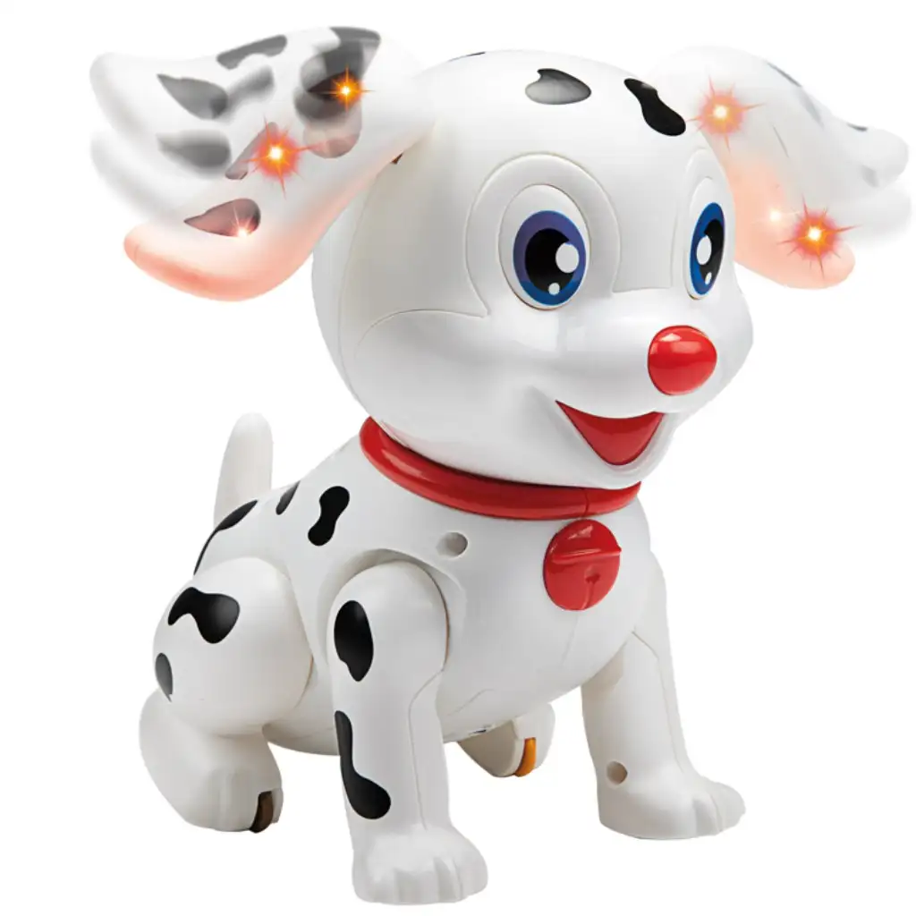 Acest drăgălaș mic dalmațian va cuceri imediat inimile copiilor! „Primul meu cățeluș dalmațian interactiv” se mișcă vesel, latră, cântă și chiar și urechile îi luminează în timpul jocului. Este alegerea perfectă pentru copiii care sunt încă prea mici pentru un animal de companie adevărat, dar își doresc un prieten adorabil. Acest cățeluș interactiv nu doar distrează, ci dezvoltă simțurile și atenția, aducând totodată multe zâmbete. Să înceapă plimbarea cu micuțul dalmațian!
