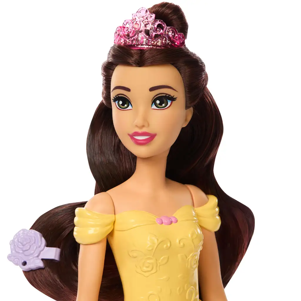 Păpușa Belle îi inspiră pe copii să intre în lumea poveștilor cu rochia sa spectaculoasă, chipul zâmbitor și părul brunet, lung. În timp ce au grijă de cățeluș, cei mici pot învăța jucându-se despre responsabilitatea față de animale. Setul este cadoul ideal, oferind atât joc cu păpușa, îngrijirea animalutului, cât și magie cu schimbare de culoare – totul într-un ambalaj Disney minunat.
