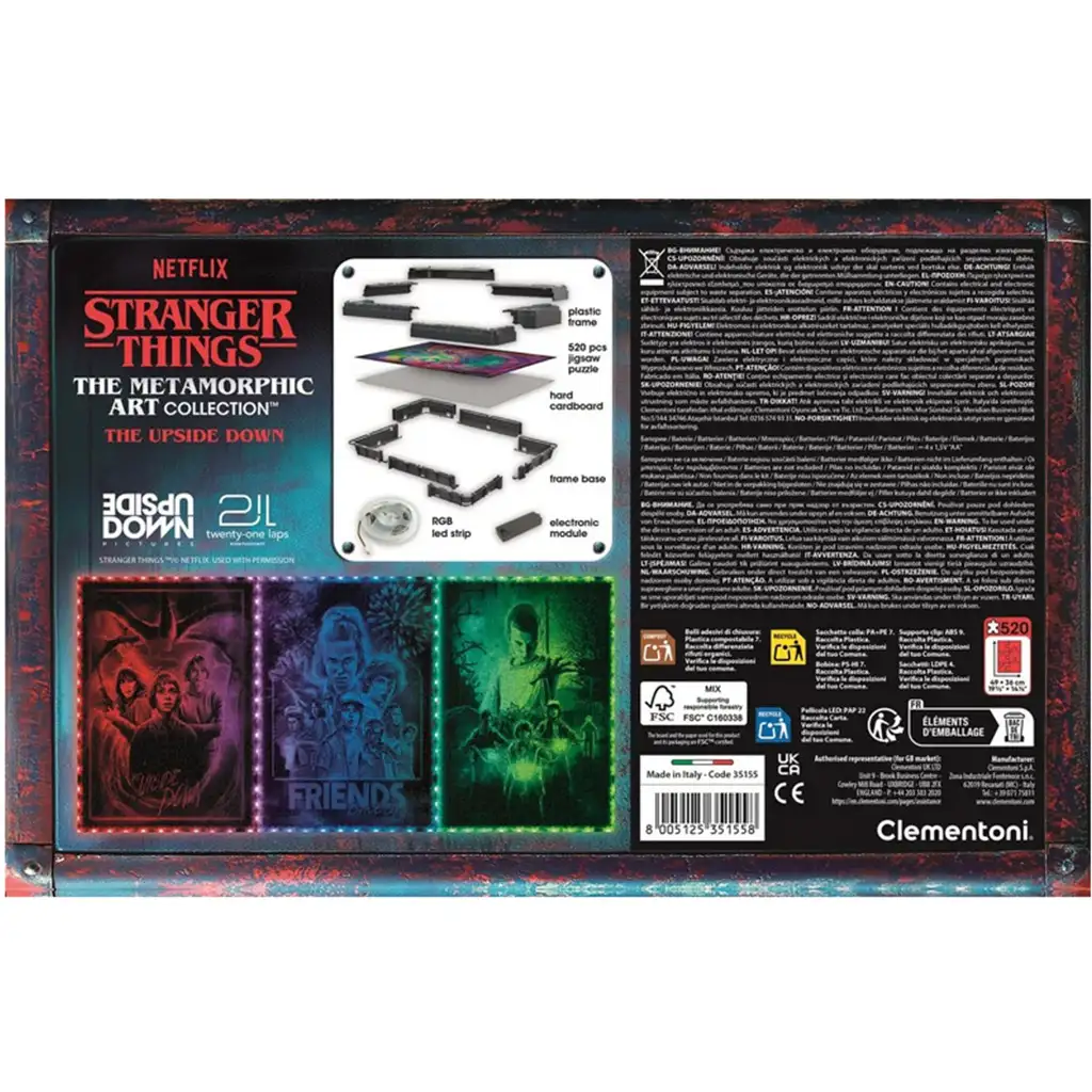Puzzle Stranger Things cu 520 de piese, cu ramă și iluminare LED RGB – Clementoni