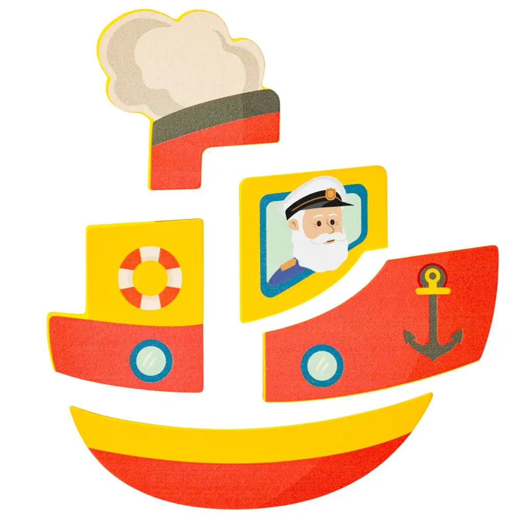 Acest puzzle dezvoltă excelent abilitățile motorii fine, coordonarea ochi-mână și gândirea logică. În timpul jocului, copiii învață să recunoască diferitele forme și descoperă cum să le potrivească pentru a completa vaporul. Placa de bază îi ajută pe cei mici să găsească mai ușor aranjamentul corect, oferindu-le astfel satisfacția reușitei după fiecare asamblare.