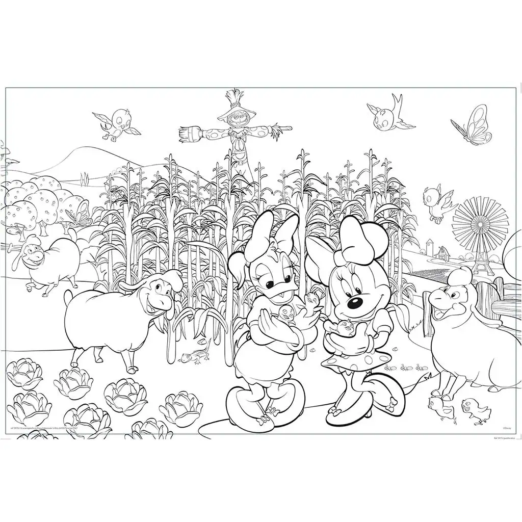 Puzzle-ul maxi 2 în 1 Minnie Mouse și cartea de colorat oferă o experiență cu adevărat magică pentru orice copil creativ! Setul conține un puzzle mare, format din 150 de piese (70x50 cm), a cărui față prezintă o scenă veselă și plină de culoare cu Minnie Mouse și prietenii ei pe o pajiște de primăvară, iar cealaltă față poate fi folosită ca desen de colorat alb-negru. Astfel, copiii nu doar că pot asambla puzzle-ul, ci își pot colora din nou scena Disney preferată după propria imaginație.