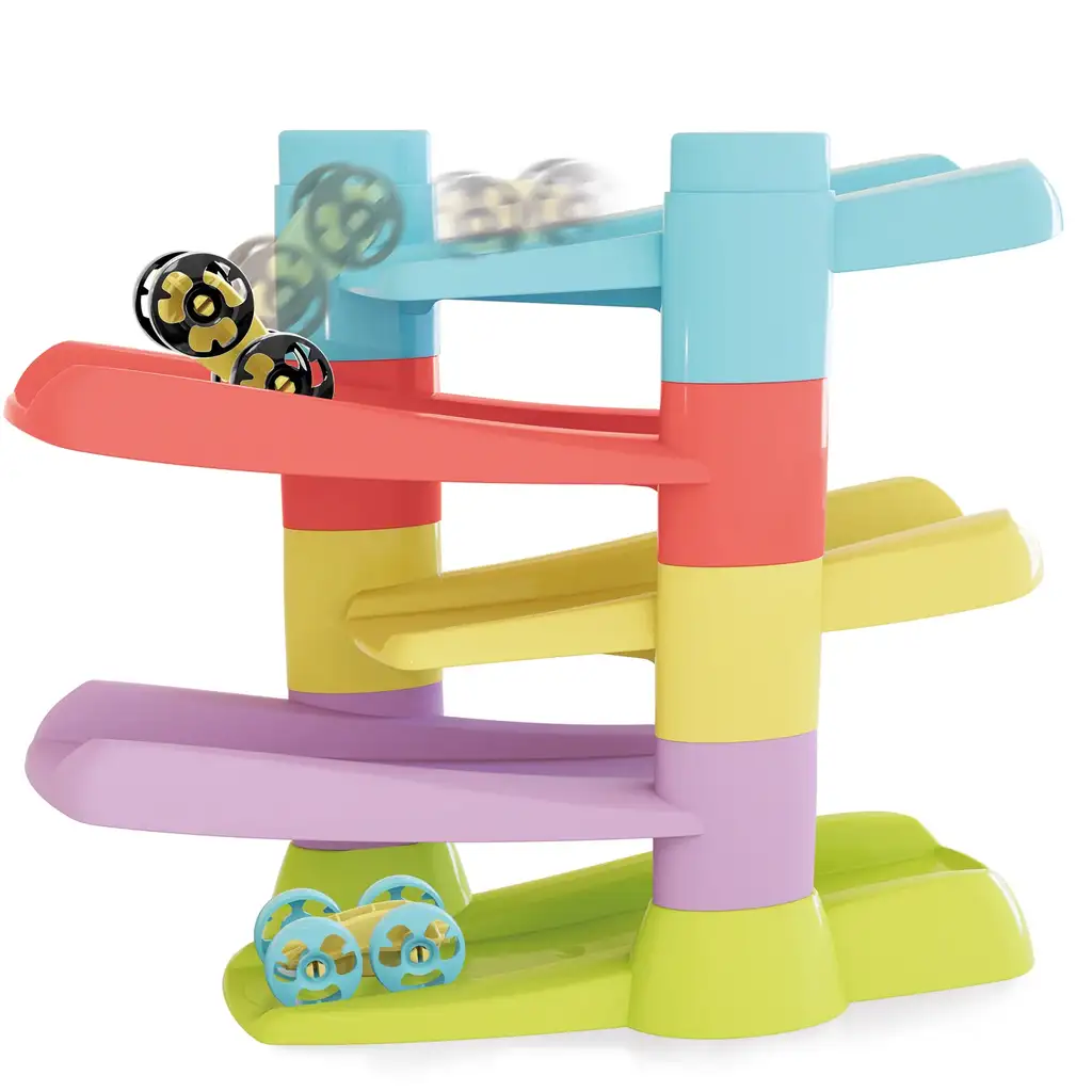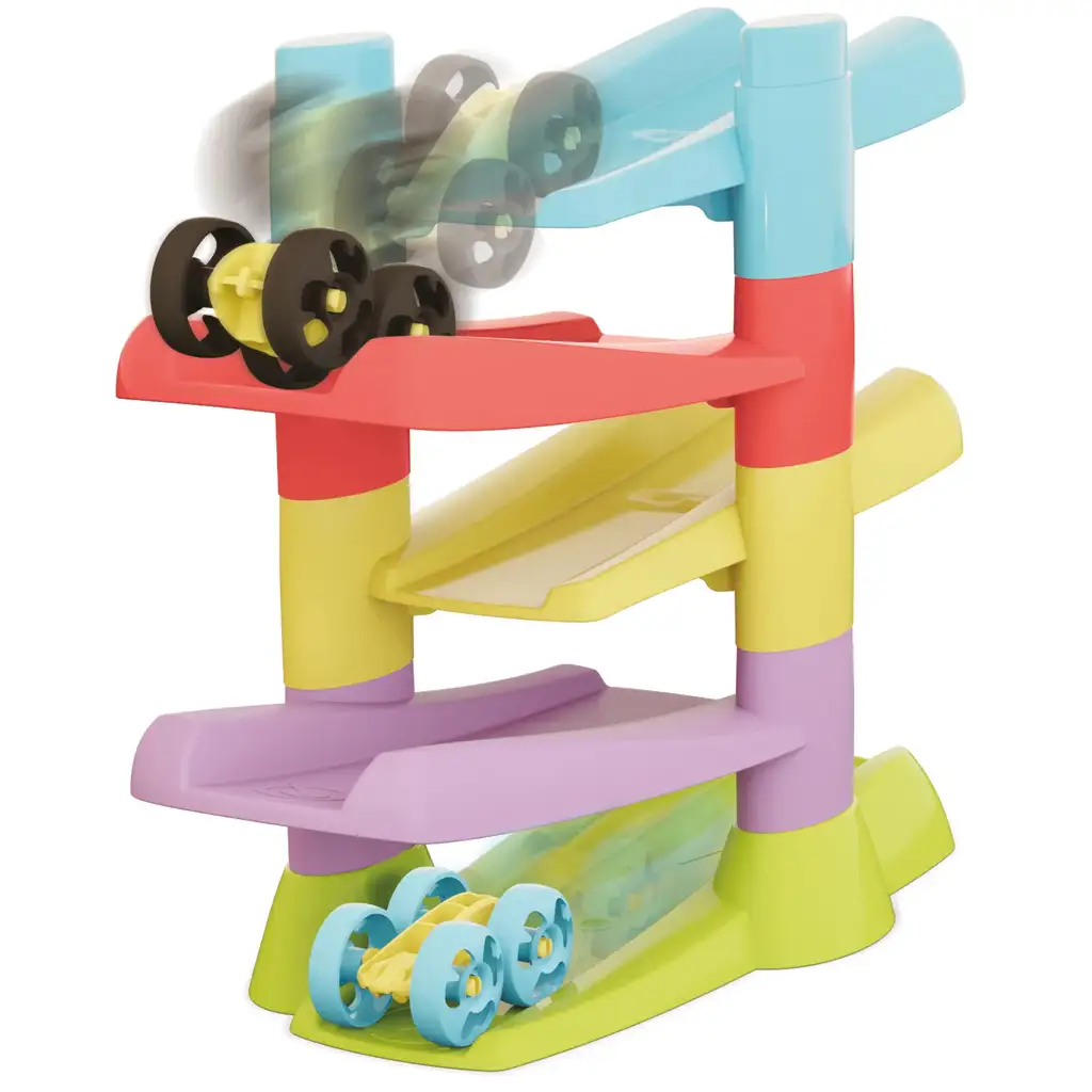 Turnul ghidează micile mașinuțe flip pe 5 niveluri, iar acestea se întorc automat la sfârșitul fiecărei rampe și continuă coborârea lor rapidă. Această mișcare „flip” nu este doar spectaculoasă, ci îi ajută pe copii să înțeleagă relațiile cauză-efect, stimulându-i în același timp să repete, să experimenteze și să exploreze.