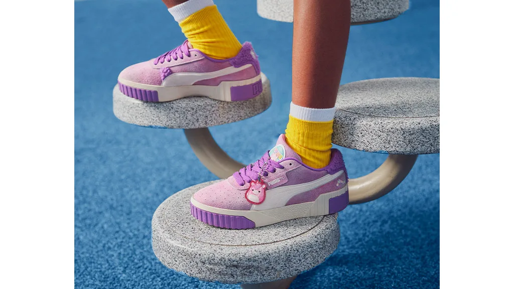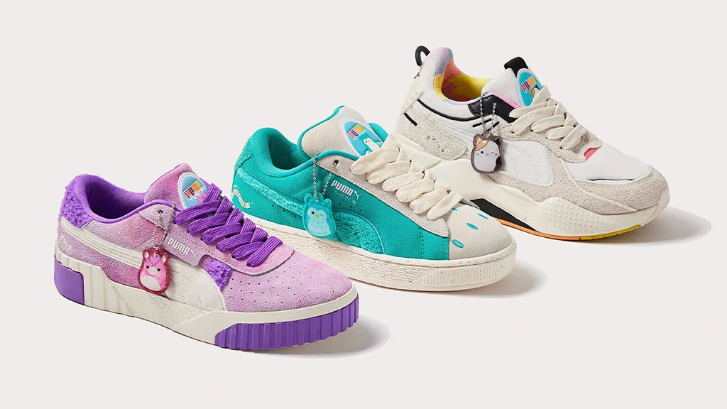 Cea mai recentă colecție licențiată PUMA este și mai moale. Această colecție tematică Squishmallows include trei perechi de încălțăminte inspirate de Cam, Pisica, Winston, Bufnița și Lola, Unicornul, precum și îmbrăcăminte pentru bebeluși, copii mici și tineret.