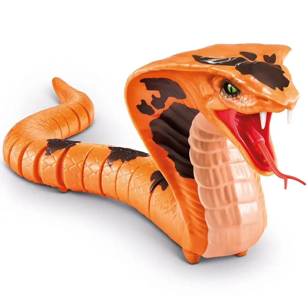 Pregătește-te pentru o experiență de joc cu adevărat înspăimântătoare, dar totodată palpitantă, cu ajutorul robotului Cobra de la Robo Alive! Acest șarpe uimitor, care se mișcă realist, îi va surprinde cu siguranță pe copii (și pe adulți), atunci când prinde viață brusc și se strecoară asemenea unei adevărate cobre regale. Datorită detaliilor atent lucrate și mecanismului realist de mișcare, jucăria oferă un spectacol înfricoșător de autentic – desigur, fiind în același timp o distracție complet sigură.