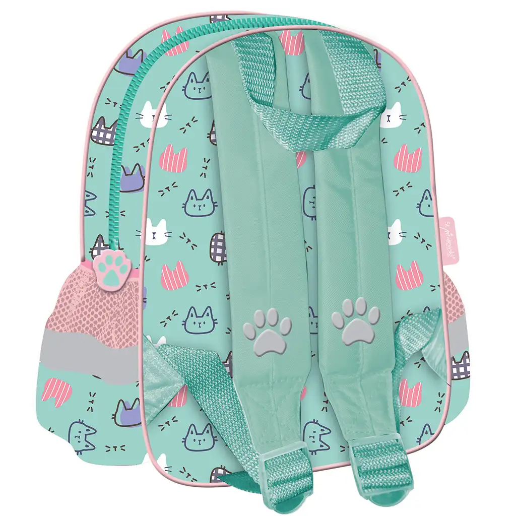 Rucsacul pentru grădiniță cu pisicuță „My Little Friend Fluffy Kitty”, de 28x25 cm, este alegerea perfectă pentru orice copil de grădiniță care iubește pisicile drăgălașe și culorile vesele. Modelul fermecător al rucsacului este decorat cu fotografia unei pisicuțe mari și simpatice în mijlocul buzunarului frontal, iar pe întreaga geantă grafica veselă cu pisici și inimioare face ca aspectul să fie și mai jucăuș. Culorile de bază roz și verde mentă, precum și fermoarele în formă de lăbuță oferă rucsacului un aspect cu adevărat special și prietenos, pe care orice copil îl va purta cu bucurie.