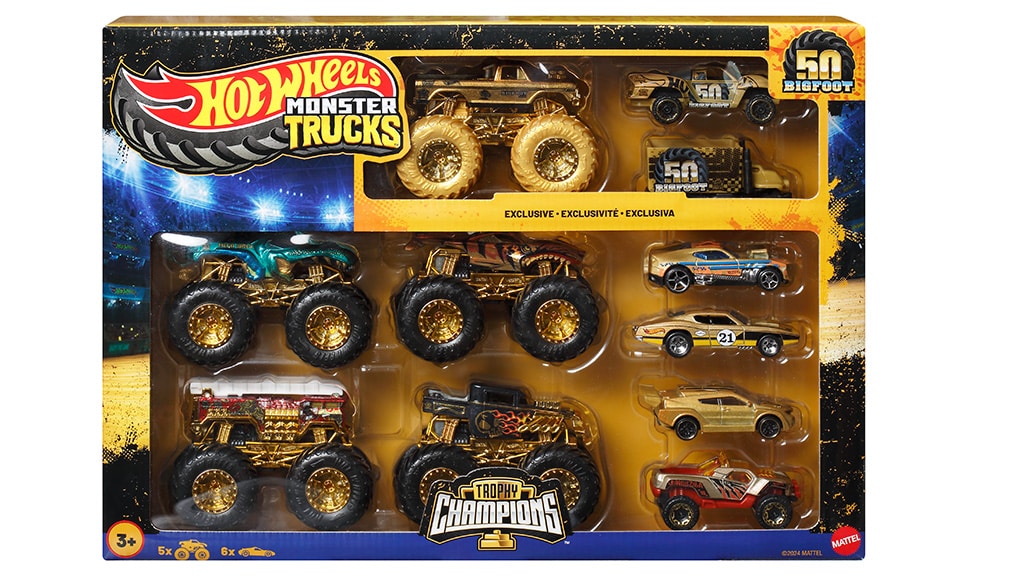Multipack-ul Hot Wheels Monster Trucks Trophy Champions conține cinci camioane monstru și trei vehicule exclusiviste, complet aurii. Acest pachet special este creat pentru colecționari și fani care apreciază vehiculele cu design unic și detalii bogate. Camioanele monstru, cu roțile lor masive și aspectul impresionant, garantează o experiență de joc palpitantă. Vehiculele aurii reprezintă un plus special pentru orice colecție, fiind deosebit de valoroase datorită rarității și unicității lor.Luna viitoare, copiii se pot bucura de distracția aniversară Bigfoot chiar și acasă, cu ajutorul unui model turnat din metal! Mașina face parte din Champions Multipack, care costă în dolari și include și un Baja Truck și un Baja Hauler. Acest pachet special oferă copiilor oportunitatea de a se juca creativ și de a explora lumea diferitelor vehicule. Modelul Bigfoot poate fi deosebit de interesant pentru cei care sunt pasionați de vehiculele de mare performanță și de off-road. Pachetul poate fi un cadou perfect pentru orice ocazie și garantează bucurie celor mici.