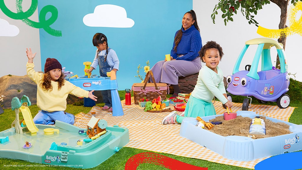 Little Tikes lansează pe piață patru locuri de joacă exterioare și cu apă, inspirate de seria BBC Bluey, tocmai la timp pentru primăvară! Bazate pe episoadele seriei animate, copiii pot învinge căldura în timp ce înoată, se joacă și se avântă prin scenele preferate ale fanilor alături de iubita familie Heeler.