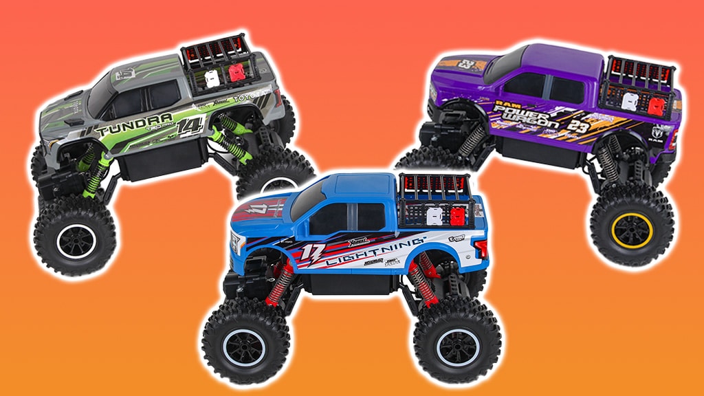 Aceste vehicule R/C sunt pregătite să cucerească stânci abrupte, dealuri înclinate și orice alt teren dificil! Copiii își pot lua oriunde pasiunea pentru monster truck-uri și pot urmări cum vehiculele lor se cațără, sar și se rostogolesc în fiecare aventură pe care o întâlnesc. În serie se regăsesc vehicule precum Ford F-150 Lightning Rock Crawler, Toyota Tundra Rock Crawler, Ram 2500 Power Wagon Rock Crawler, Ford Bronco Raptor Rock Crawler și Toyota Tacoma Rock Crawler. Aceste mașini cu telecomandă nu sunt doar rezistente și puternice, ci oferă și o experiență palpitantă pentru toate vârstele, dezvoltând totodată dexteritatea și abilitățile de rezolvare a problemelor. Sunt alegerea ideală pentru cei care iubesc aventura și provocările!