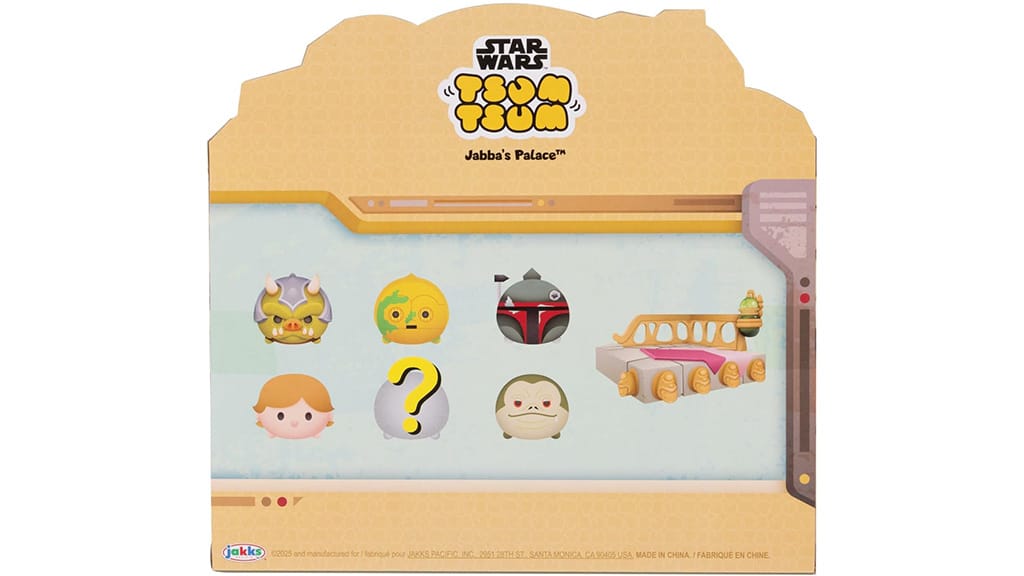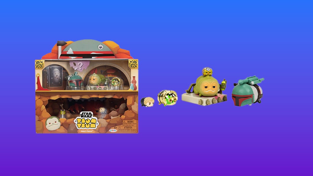 Setul Deluxe JAKKS Pacific Star Wars Tsum Tsum Palatul lui Jabba este conceput pentru tinerii copii intergalactici care iubesc franciza. Aceste figurine mici sunt inspirate din filmul Star Wars: Întoarcerea Jediului, inclusiv momentul crucial în care Luke Skywalker se confruntă cu Jabba, Huttul. Mici, dar puternice, figurinele din setul de joacă includ marele Boba Fett (3,8 cm), marele Jabba, Huttul, C-3PO de dimensiune medie (2,5 cm), micul Gartogg (1,3 cm), micul Luke Skywalker și un personaj surpriză. Setul include, de asemenea, un element mare de accesoriu, tronul lui Jabba, Huttul. Cutia de joc servește și ca vitrină de colecție.