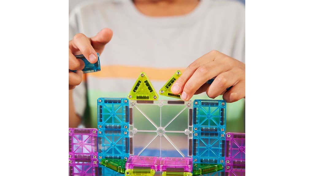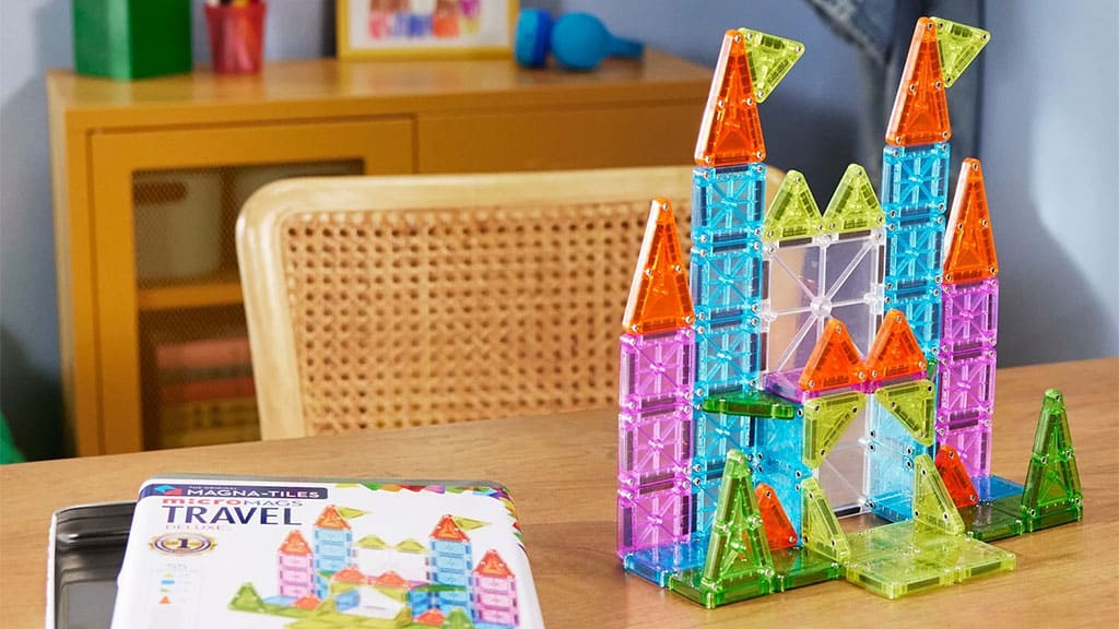 Acest set de 55 plăci magnetice conține elemente de dimensiuni mai mici, care facilitează călătoria, precum și o cutie metalică ce poate fi folosită și ca bază. Setul este conceput pentru a oferi o experiență de construcție distractivă și creativă în timpul deplasărilor, de exemplu în excursii cu mașina, vacanțe sau drumeții. Datorită dimensiunii compacte, încape ușor în geantă, astfel încât copiii se pot bucura de joc oriunde și oricând. Brandul folosește materiale de calitate pentru ca plăcile să fie durabile și sigure, astfel încât părinții pot fi liniștiți în timpul jocului.