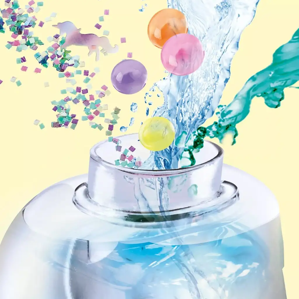 Setul conține toate materialele necesare: mărgele, confetti, elemente decorative colorate, autocolante și un lichid special care dă viață mișcării magice a lămpii cu lavă. Copiii pot adăuga singuri elementele decorative în corpul transparent al lămpii în formă de unicorn și pot amesteca lichidul – astfel, fiecare lampă cu lavă va fi complet unică. Lampa finalizată luminează, oferind o lumină ambientală frumoasă camerei chiar și noaptea.