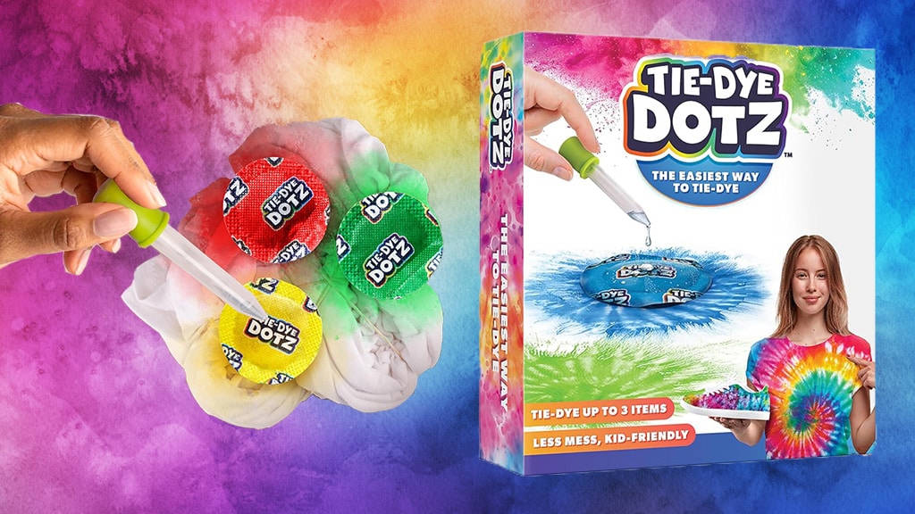 Tie-Dye Dotz este un set creativ de hobby pentru activități de artizanat, creat de Blue Marble, care simplifică procesul de vopsire tie-dye atât pentru copii, cât și pentru adulți. În locul sticlelor tradiționale de vopsea, care pot fi dezordonate, și a pașilor complicați, acest set conține „puncte” de vopsea preumplute, care eliberează culoarea doar atunci când copiii adaugă apă. Micii artiști plasează capsulele de vopsea pe materialul textil, apoi, cu pipeta inclusă, picură apă peste ele și pot urmări cum culorile se răspândesc și se amestecă pe țesătură. Acest set nu este doar distractiv, ci și o modalitate curată și simplă pentru copii de a descoperi tehnica tie-dye, creând modele unice pe tricouri, genți sau alte textile. Tie-Dye Dotz dezvoltă creativitatea, motricitatea fină și oferă o experiență comună pentru întreaga familie.