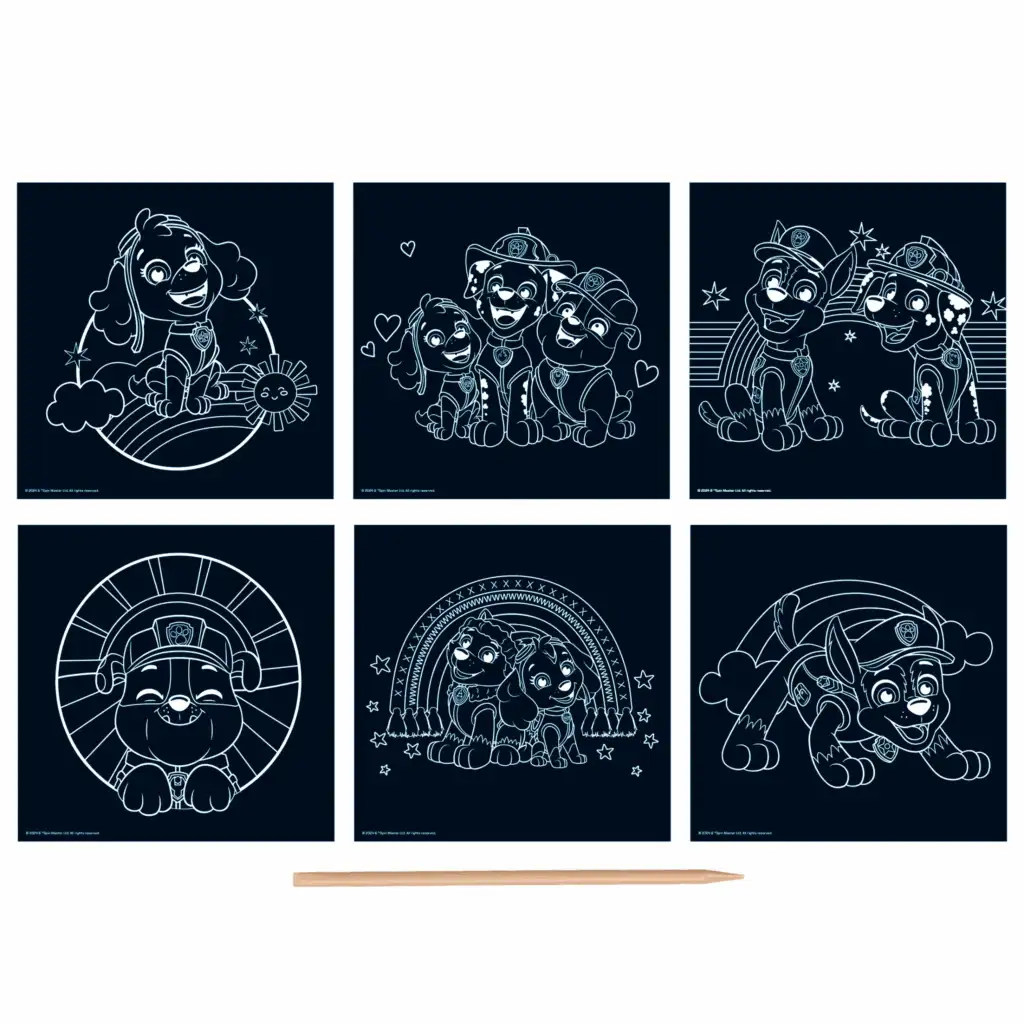 6 imagini predesenate răzuibile cu personaje din Patrula Cățelușilor